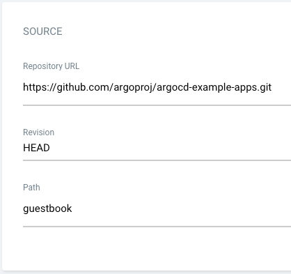 Connect the https://github.com/argoproj/argocd-example-apps.git repo to Argo CD by setting repository url to the github repo url, leave revision as HEAD, and set the path to guestbook: