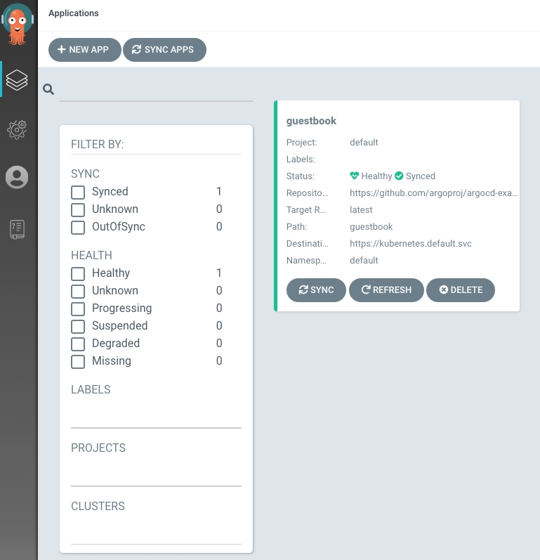 An example repository containing a guestbook application is available at https://github.com/argoproj/argocd-example-apps.git to demonstrate how Argo CD works.